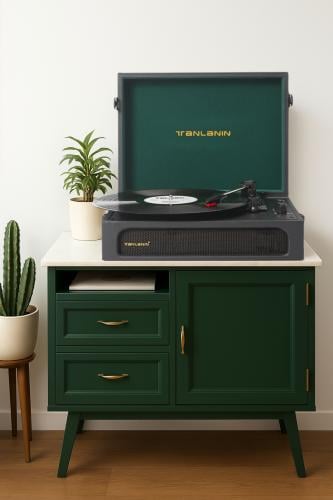 TANLANIN Vinyl Record Player Black & Green (Alligator Pattern)